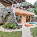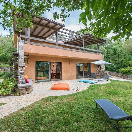 Seaside Holiday House Cizici, Krk - 23987 Malinska villa ligt binnen 3 km van Biserujka-grot en nodigt gasten uit om te ontspannen op een terras.